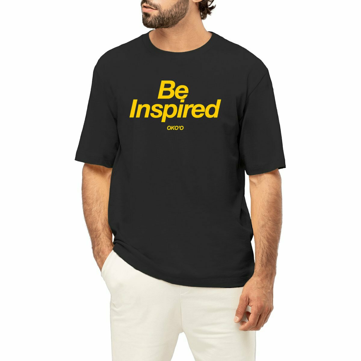 Le conseil OKO’O : C’est la pièce idéale pour mettre en valeur nos slogans « Be Inspired » ou « OKO’O c’est vous ». Portez-le rentré dans notre Jogger « Horizon » pour un look urbain ultra-léché.